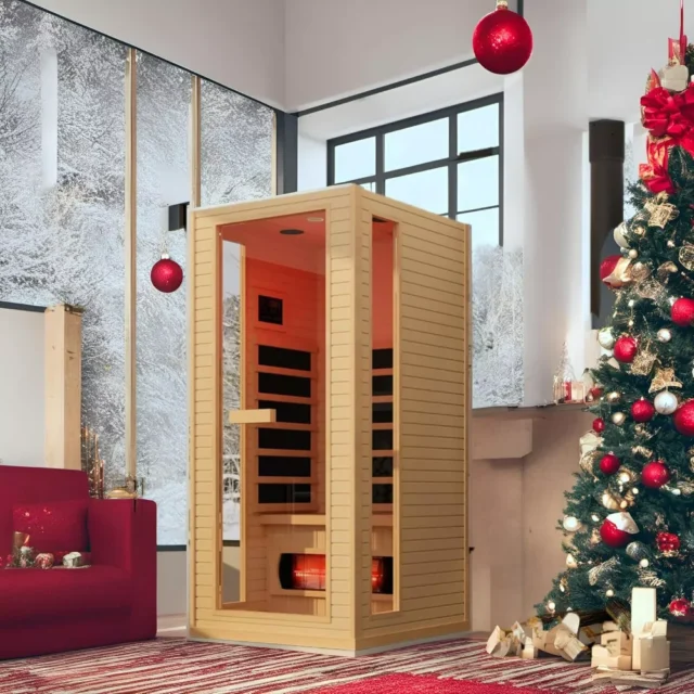The combination of full-spectrum infrared technology and high-quality solid wood construction makes this sauna both effective and visually appealing. Its rapid heating system ensures you don’t have to wait long to enjoy a soothing experience, while the spacious design comfortably fits up to two people.