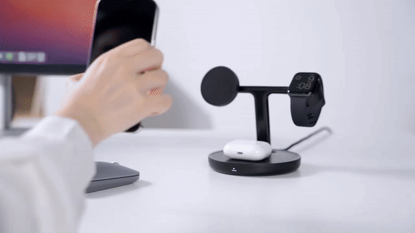 I'm absolutely thrilled with this 3-in-1 wireless charger. The magnetic alignment is a real standout feature, it ensures my devices are perfectly positioned for optimal charging every time. Plus, the ability to adjust the stand by ±20° has made video calls and content viewing so much more comfortable. It's clear that a lot of thought went into designing this product – even down to hidden cable management for Apple Watch! A truly innovative solution for all Apple device owners.