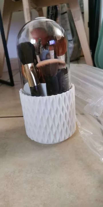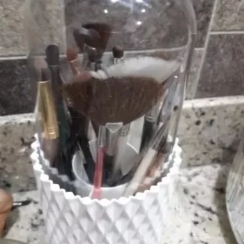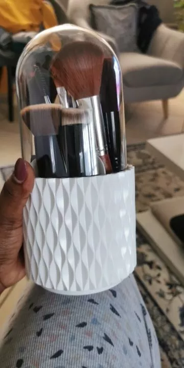 I've been on the hunt for a makeup organizer that's not only functional but also adds to the of my vanity - and this rotating storage box is just it! The elegant white design adds such a chic touch, and I'm in love with how effortlessly it rotates 360°. It’s made from high-quality material which ensures durability. Plus, the protective lid keeps all my brushes dust-free. A well-thought-out product indeed!