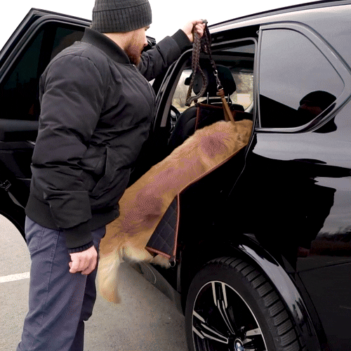 I love this dog hammock, I got a new car and my dog absolutely loves to ride. With leather seats, I was afraid he would tear up the seats with his nails. This dog hammock fit perfectly in the back seat, allowing my dog enough room to enjoy the car rides while also protecting the leather. It is machine washable so when it gets dirty, you just throw it in the wash.