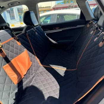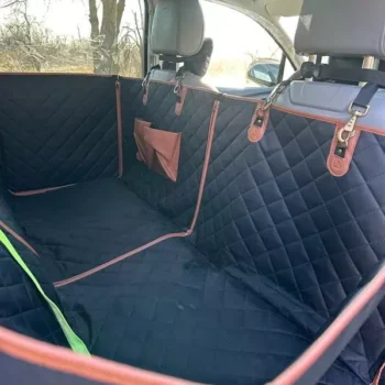 This dog hammock has become an essential for our family road trips! It's easy to install and stays put thanks to seat anchors and sturdy straps. I love how it protects my car seats from spills with its waterproof fabric.