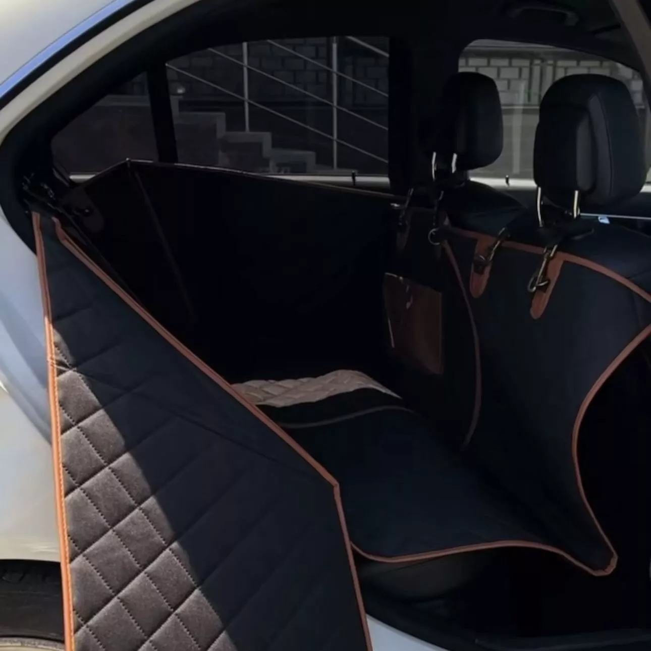 I can't imagine using any other product to safeguard my leather seats from my dog! It prevents her toys from falling onto the car floor. The non-slip underside ensures the cover stays in place, giving her better stability. It's also water-resistant and features a pocket where I store her essentials like a collapsible water bowl and leashes.