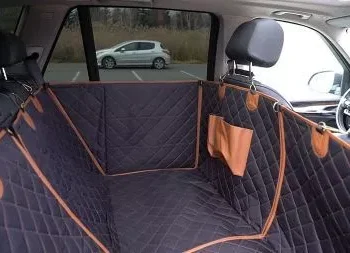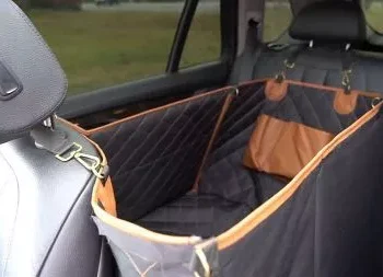 I love this dog hammock, I got a new car and my dog absolutely loves to ride. With leather seats, I was afraid he would tear up the seats with his nails. This dog hammock fit perfectly in the back seat, allowing my dog enough room to enjoy the car rides while also protecting the leather. It is machine washable so when it gets dirty, you just throw it in the wash.
