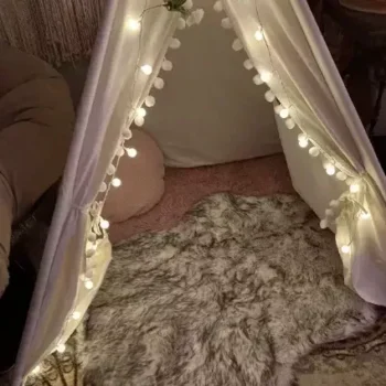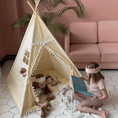 This play teepee tent has been an amazing purchase for my kids. they spend so much time in it, reading books, playing games, and even taking naps. the setup was quick and easy, and the materials are very durable. the fabric is soft and has a beautiful design that fits perfectly with their room decor. the wooden poles are strong and keep the tent stable. it’s spacious enough for them to play comfortably with their toys inside. the window is a nice touch, allowing them to peek out and have more fun. it’s also lightweight and easy to move around if needed. i’m really happy with this purchase and love seeing how much joy it brings to my children. highly recommend it to other parents.