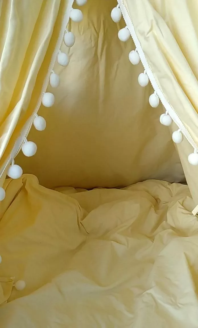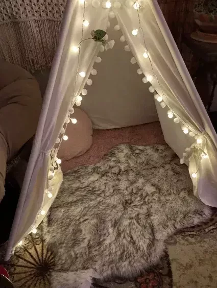 Our family absolutely loves this teepee tent! It's the perfect size, not too big and not too small. The kids play inside comfortably, and it fits perfectly in various areas of our home without taking up too much space.'ve even taken it outside for some backyard! And let me tell you about cleaning - it's a breeze because it's machine washable!