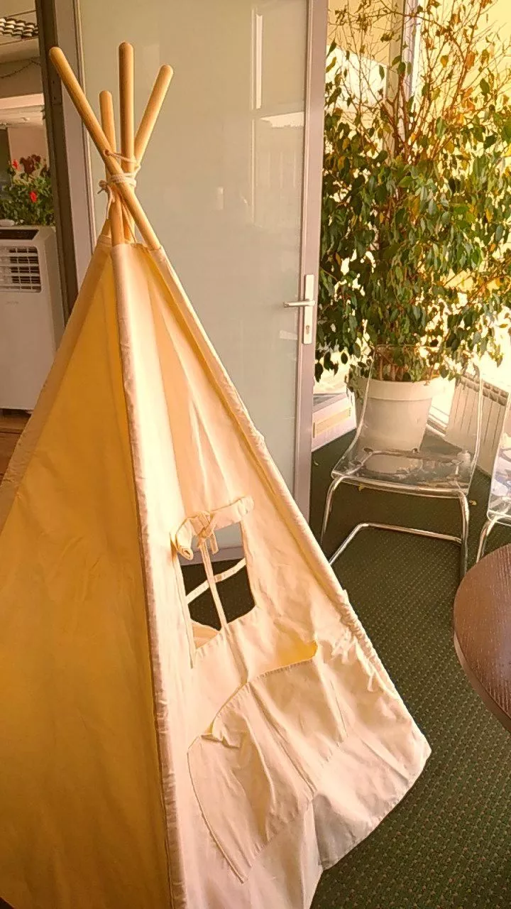 got this teepee tent for my kids and it’s been a big hit. they love having their own little space to play and read. the tent is very well-made, with sturdy wooden poles and durable fabric. it was easy to set up and only took about 15 minutes. the design is adorable and fits well in their room. my kids especially love the small window and the space inside is just right for them to sit and play comfortably. it’s also easy to take down and store when needed. this tent has provided hours of entertainment and is a wonderful addition to their play area. highly recommend it to anyone looking for a fun and stylish play tent for their kids.