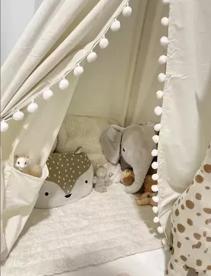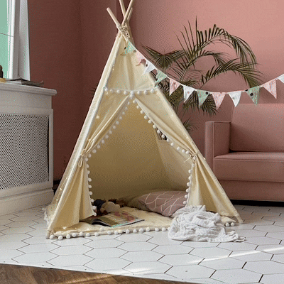 Our family is absolutely smitten with this teepee tent. It's the perfect size for our little ones to play in and fits comfortably in various areas of our home. The solid pine wood structure ensures it's sturdy while the soft cotton interior makes it cosy.