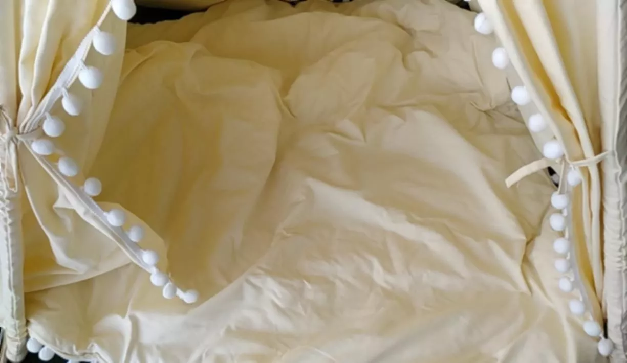 this tent is just what we needed. perfect size that fits anywhere in the house