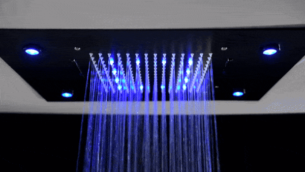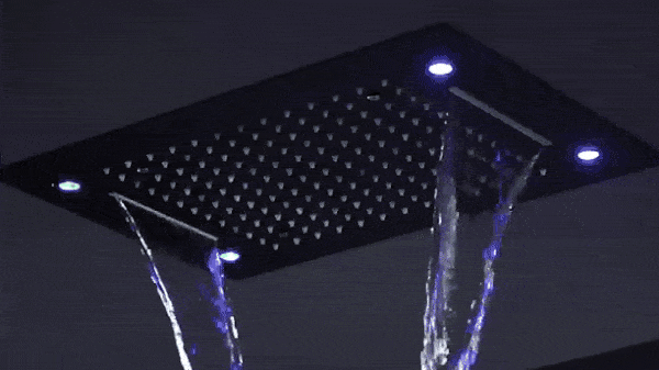 • Large LED Shower Head: The expansive shower head delivers a rainfall and waterfall experience, with the added luxury of LED lighting.