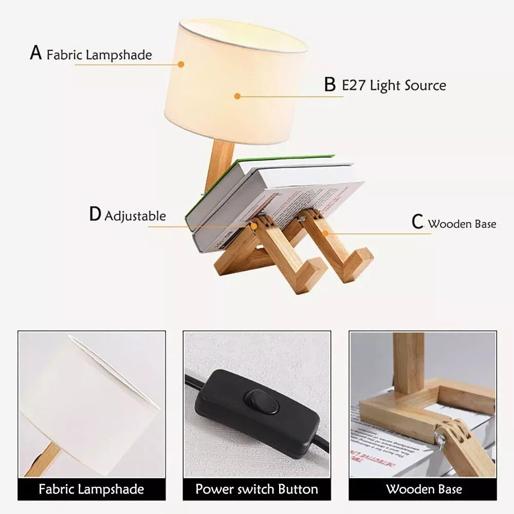 Introducing the Modern Nordic Wooden Robot LED Table Lamp – a fusion of art and functionality. This desk light isn’t just a lamp; it’s a statement piece that transforms your space with its unique robot shape and warm, inviting glow. Whether it’s for reading in your bedroom or adding a touch of elegance to your living room, this lamp promises to elevate your decor.