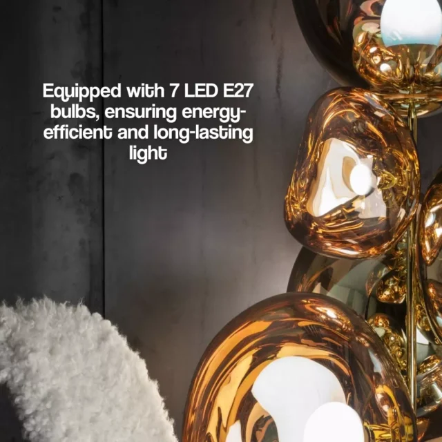 Our Nordic Lava LED Floor Lamp boasts a range of features that set it apart. Crafted from high-quality hardware and acrylic, it offers durability and a sleek look. The lamp’s mirror-like texture, achieved through innovative electroplating, adds a luxurious feel to your space. Standing at an impressive height of 175cm and with a diameter of 90cm, it provides optimal illumination for an area of 5-10 square meters.
