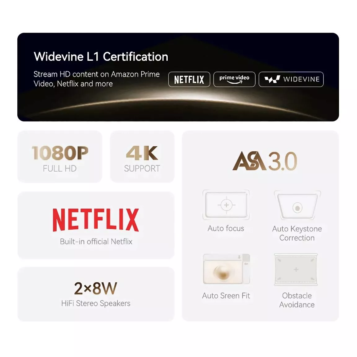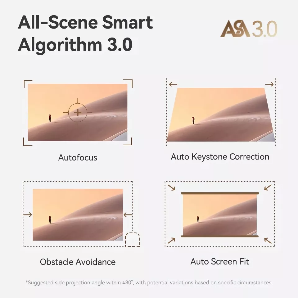 What sets our projector apart is its ability to adapt to your environment. The auto screen fit feature adjusts the projected image to fit your screen or wall space perfectly, while obstacle avoidance keeps the projection clear of interruptions. With its powerful onboard speakers and independent digital power amplifier, expect immersive audio to complement its striking visuals.