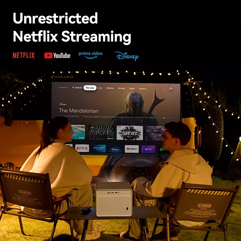 The Pro 1080P 4K Smart Home Theater Projector has revolutionized our family movie nights, taking them from average to extraordinary. This innovative piece of technology with its high-resolution picture quality has had a profound impact on the way we view movies at home. The output is so crisp and clear that it feels like we're watching a film in an actual theater, right from the comfort of our living room. One standout feature that deserves special mention is the auto-focus ability of this projector. It automatically adjusts for optimum clarity and sharpness, eliminating any manual effort on our part to get the best possible image. This feature ensures that every scene in every movie we watch comes alive with detail and vibrancy. In addition to all these fantastic features, what truly sets this device apart is its integration with Google TV. With access to thousands of apps and streaming services through Google TV's user-friendly interface, there are endless entertainment options available right at our fingertips - making it feel like we have a full-fledged cinema at home! We can easily browse through various genres or search for specific titles without any hassle. This added functionality not only enhances our viewing experience but also makes navigation incredibly easy even for those who aren't particularly tech-savvy. All in all, the Pro 1080P 4K Smart Home Theater Projector has completely changed how we enjoy films as a family by providing us with top-notch visual quality alongside seamless connectivity features. To put it simply: having this projector feels like having an actual theater inside your house – complete with premium video quality and unlimited content choices via Google TV – which is just the cherry on top!