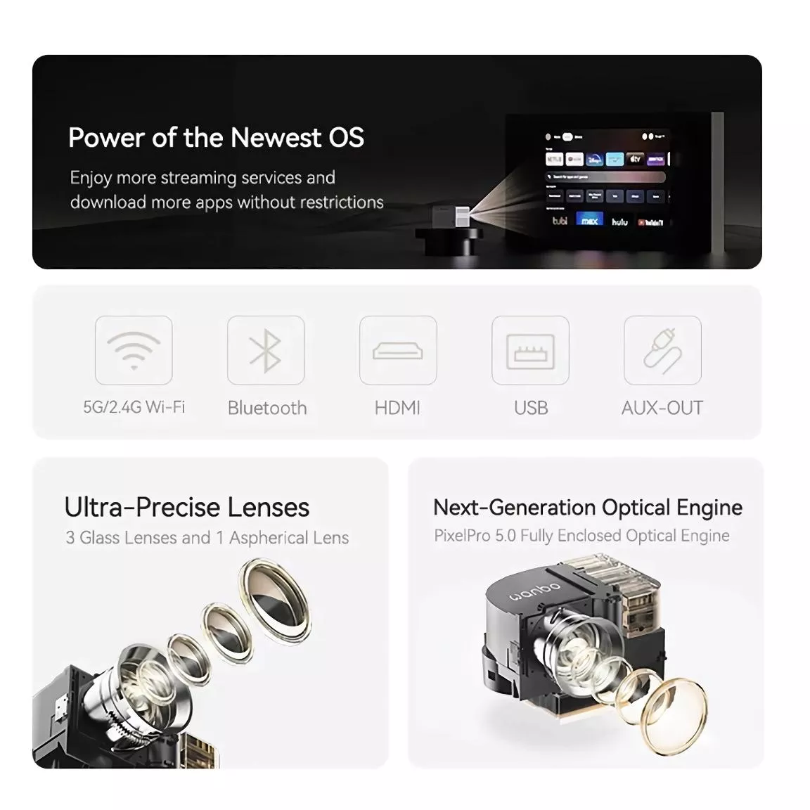 • High-Definition Clarity: Full HD 1080P resolution with 4K support ensures crystal-clear images, elevating your viewing experience.