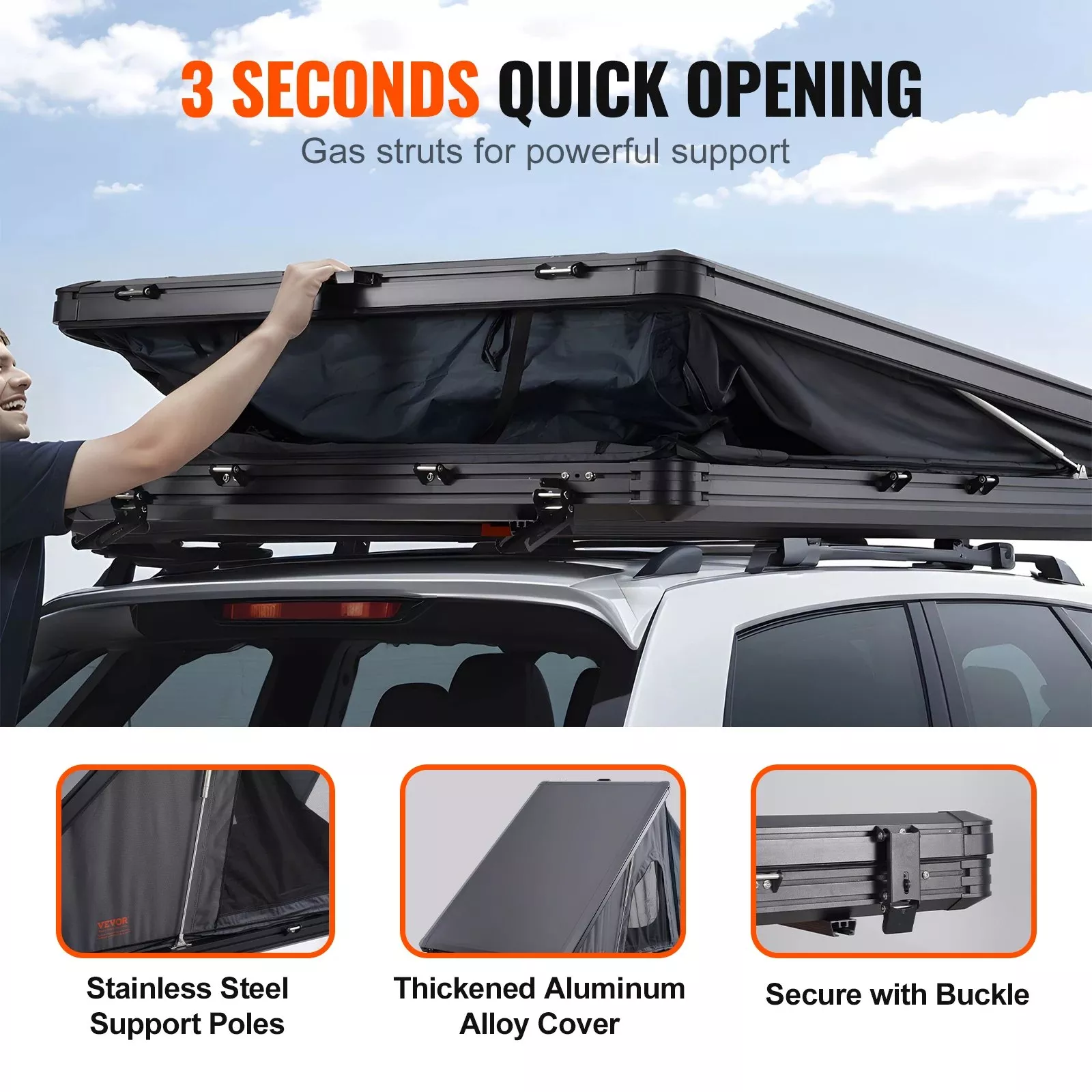 - Telescoping Ladder: The 7.5-foot telescoping ladder adjusts to fit different vehicle heights, providing easy access to your rooftop tent. It supports up to 330 lbs for safe and secure climbing.