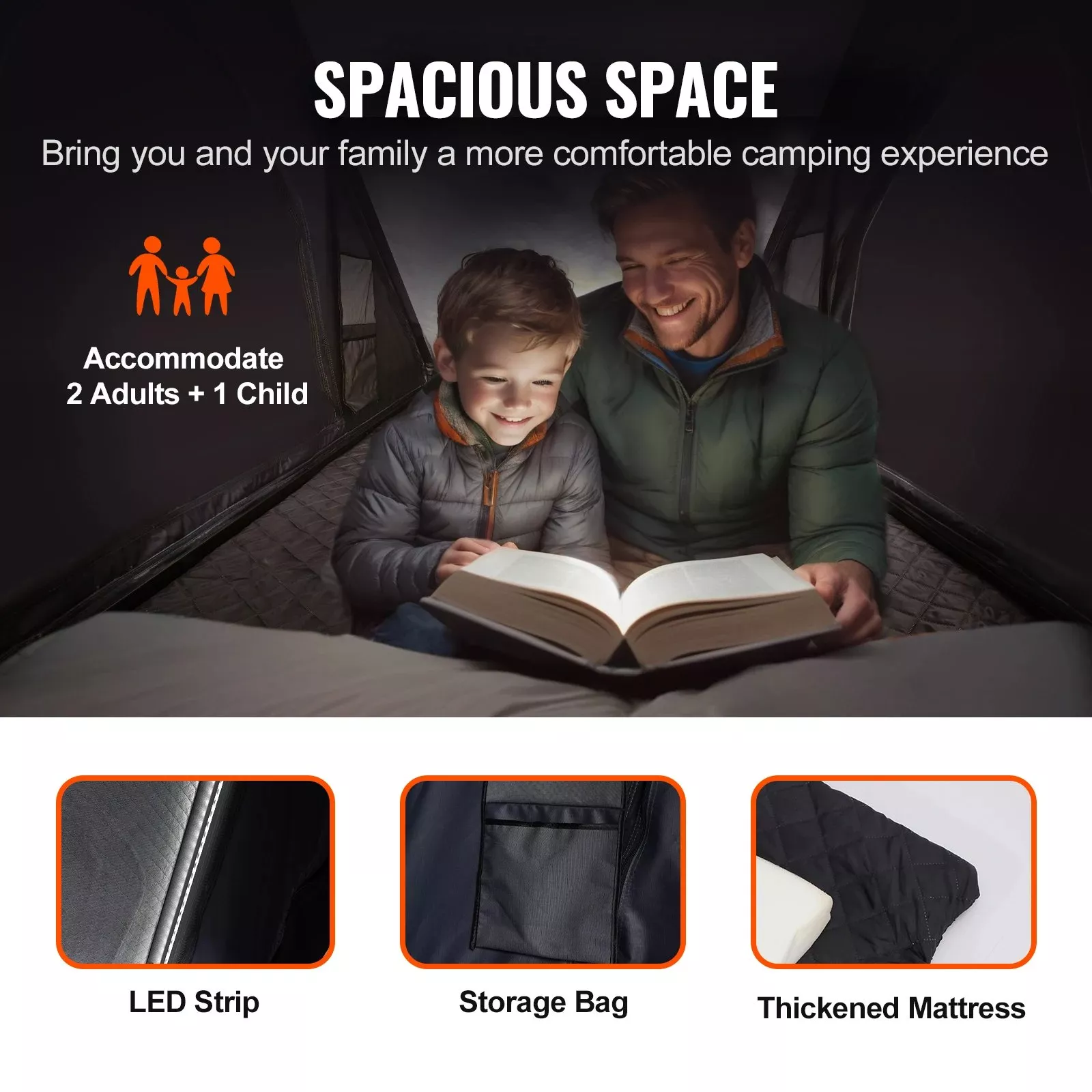 The spacious interior is perfect for accommodating two adults and one child, giving your family plenty of room to unwind after a day of outdoor fun. The built-in features, such as a thick foam mattress, breathable mesh windows, and LED lighting, make every camping experience more enjoyable. With easy setup and superior durability, this rooftop tent is ready to accompany you on countless outdoor adventures for years to come.